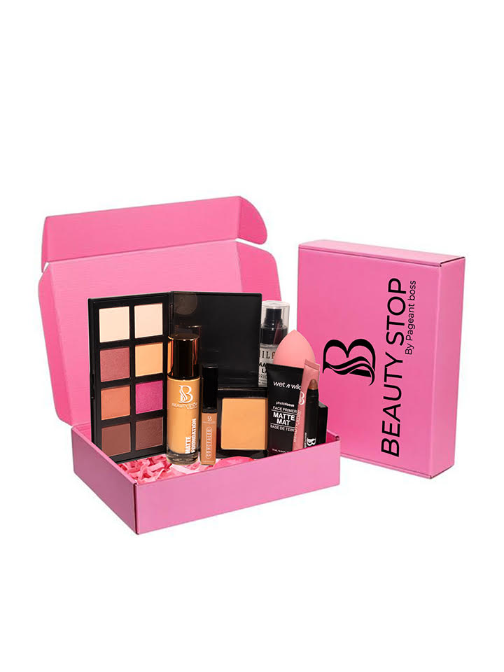 INCLUDES: Primer, Powder, Foundation, Concealer, Lipgloss, Eyebrow pencil, Eyeshadow, Lip Liner, Setting Spray, a brush, beauty blender, powder puff.ย These are all the products you need to get ahead. Curated nicely inย a brand makeup box just for you. You may type your lipstick or lipgloss colour in the notes section or any special request.